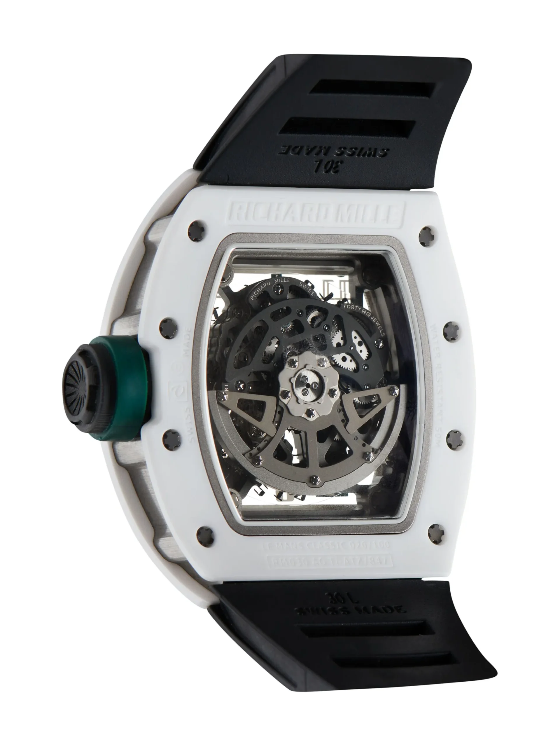 The RICHARD MILLE RM030 50mm watch represents a fusion of cutting-edge technology, unparalleled craftsmanship, and striking aesthetics. As a leader in avant-garde watchmaking, Richard Mille has developed this timepiece to deliver beyond expectations—combining form and function into a symphony of innovation. With its 50mm case size, the RM030 stands out boldly, making a statement of refined taste and modern luxury. Every feature has been meticulously designed, ensuring the wearer has a masterpiece of precision engineering around their wrist.