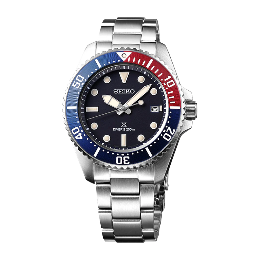 Crafted from high-quality materials, the Seiko Prospex SNE595P1 is water-resistant up to 200 meters, making it ideal for diving and other water-based activities. Its striking blue-red-blue bezel doesn’t just catch the eye—it’s built for durability, ensuring it remains a steadfast companion during any adventure.